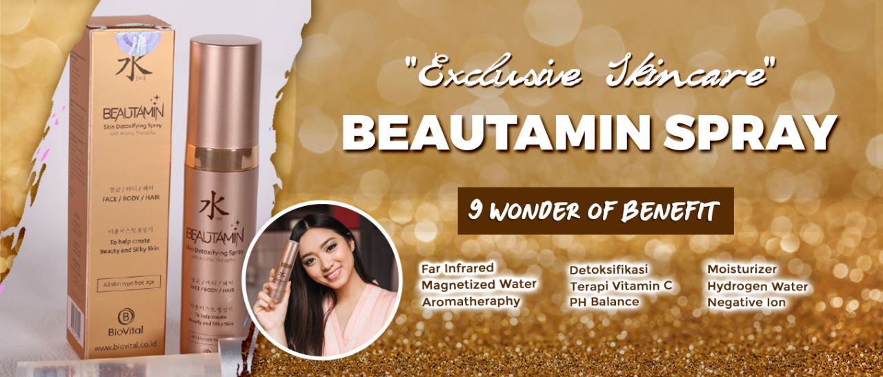 Semprotkan Beautamin Spray untuk perlindungan dan perawatan kulit wajah :